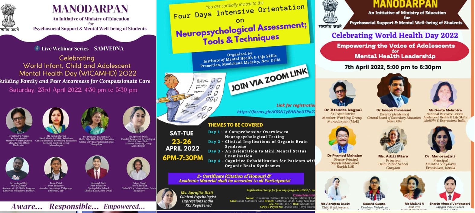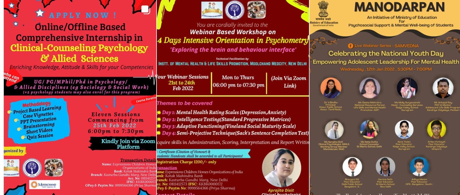 - Psychological Assessments: HTP, HFDT, 16 PF, Depression & Anxiety Rating Scales